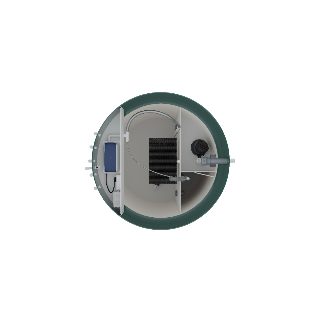 В стандартной комплектации станций Биодевайс ЭКО + выпуск очищенных стоков – самотёчный. Для принудительного отвода стоков необходимо доукомплектовать станцию дренажным насосом.